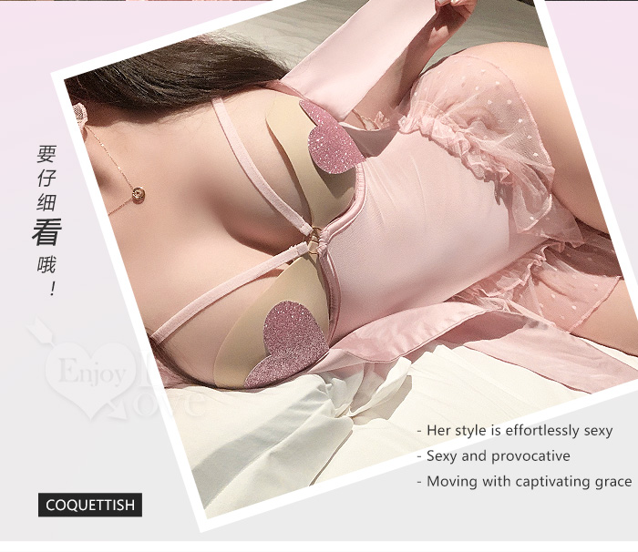 | 護士角色扮演服!愛心挖空露乳水波抽褶網紗連身裙四件式套裝