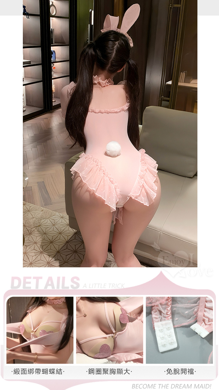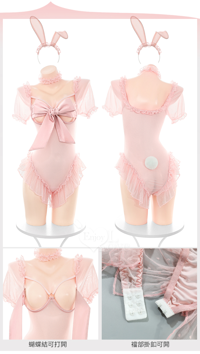 | 兔女郎角色扮演服!鋼圈托乳蝴蝶結高衩波點蕾絲開襠連身衣三件組
