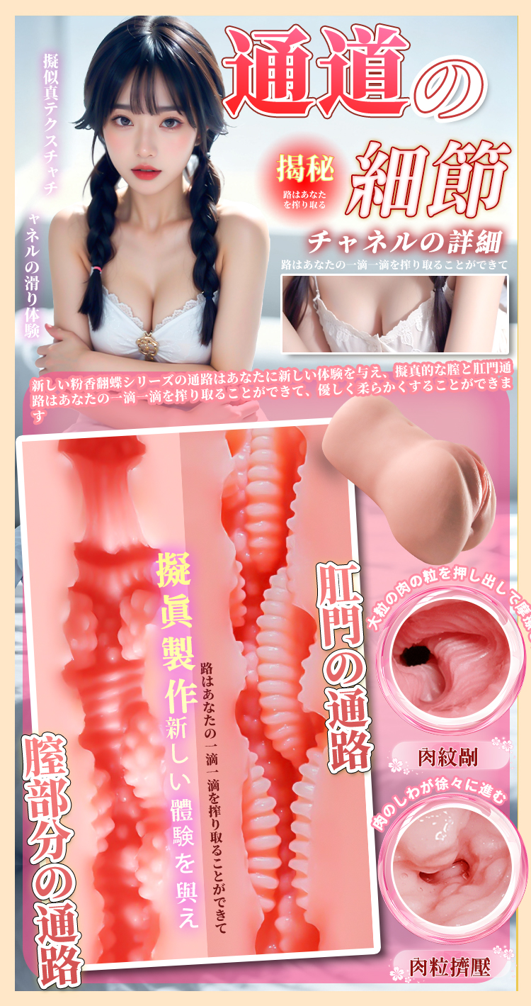 | 粉香翻蝶 厚重美尻擬真肌膚肉粒雙穴自慰器