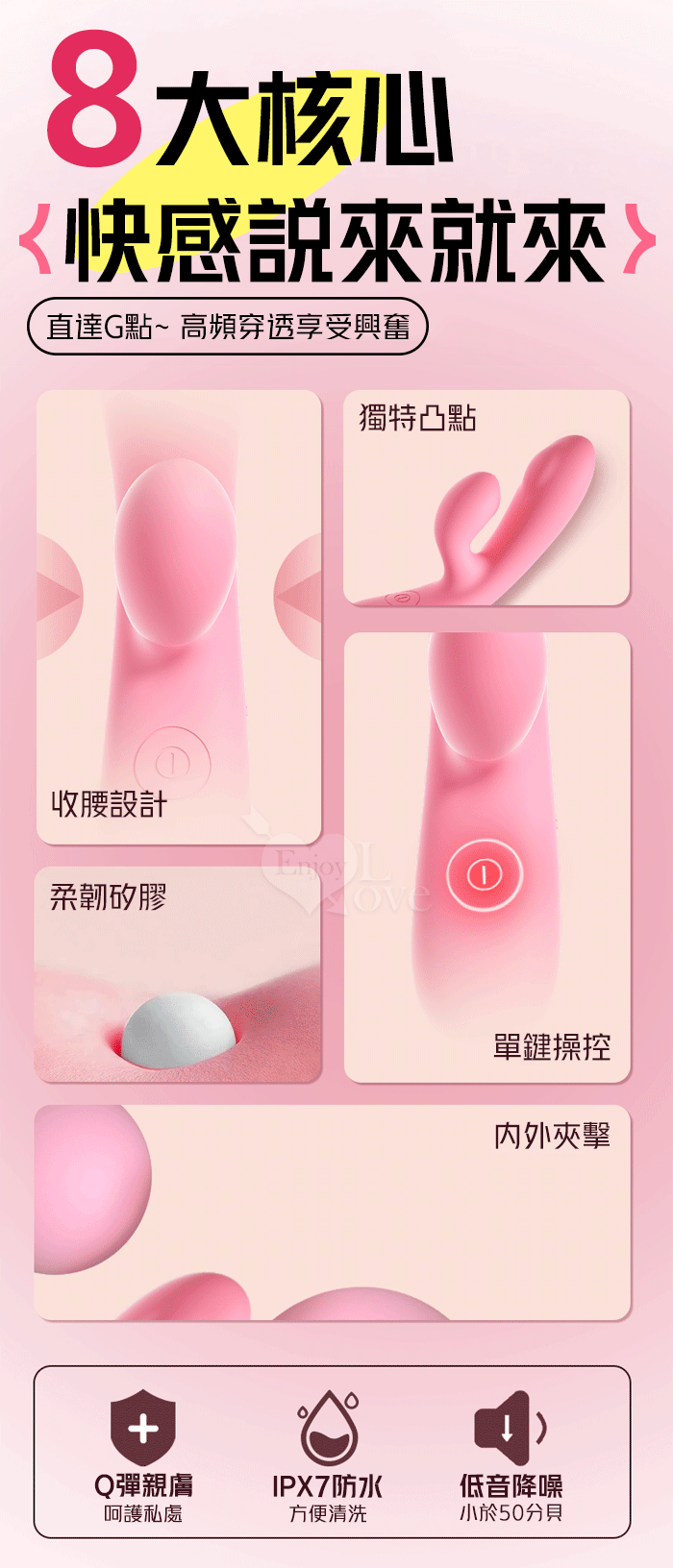LILO 來樂.DOUBLE 露娜 ‧ 內外雙震10頻撩撥入體內外刺激衝撞G點按摩棒﹝親膚矽膠/獨特凸點/收腰設計/15微翹角度﹞櫻花粉