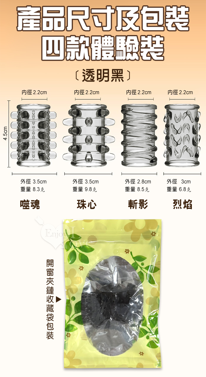 好戰4潮套.入珠纏綿顆粒組合~鎧甲延時鎖精陰莖加強環~成人性趣輔助用品-4款體驗裝﹝透明黑﹞