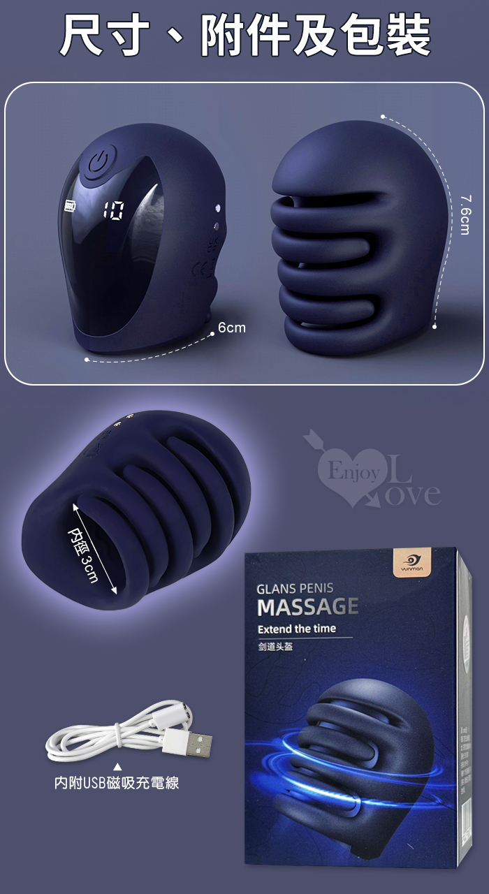 YUNMAN 云曼 ‧ 劍道頭盔 液晶螢幕開啟式觸手包裹按摩10頻強震鍛鍊龜頭突破自我名器